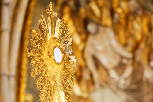 « C’est pour nous un devoir très doux d’honorer et d’adorer dans la sainte hostie, que nos yeux voient, le Verbe incarné qu’ils ne peuvent pas voir et qui, sans quitter le ciel, s’est rendu présent devant nous » (Profession de foi catholique’ Paul VI, 1968). Adorer, c’est répondre au premier commandement : « C’est le Seigneur ton Dieu que tu adoreras et à lui seul tu rendras un culte » (Mt 4, 10).