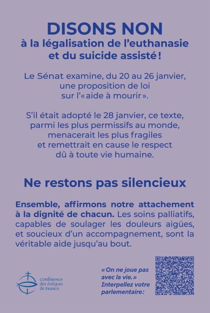 Le Projet de loi sur la fin de vie et l'euthanasie arrive en vote final le 28 janvier. MOBILISONS NOUS CONTRE CE TEXTE MORTIFERE
